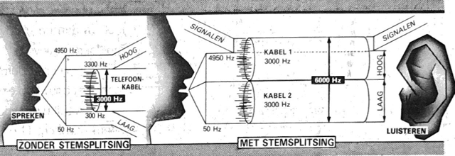 Tekening bij het artikel uit De Telegraaf: weergave van de splitsing van het stemgeluid.