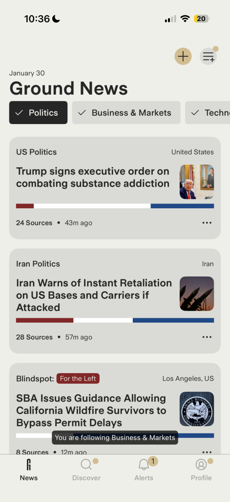 Tegen die achtergrond is Ground News een intrigerend experiment. Het platform, opgericht in 2020 in OntarioCanada, heeft als expliciet doel de politieke “blind spots” van lezers zichtbaar te maken door hetzelfde nieuws te tonen via bronnen uit verschillende ideologische hoeken. Wanneer een gebruiker een verhaal opent, verschijnen meerdere publicaties naast elkaar, gelabeld naar hun politieke signatuur.