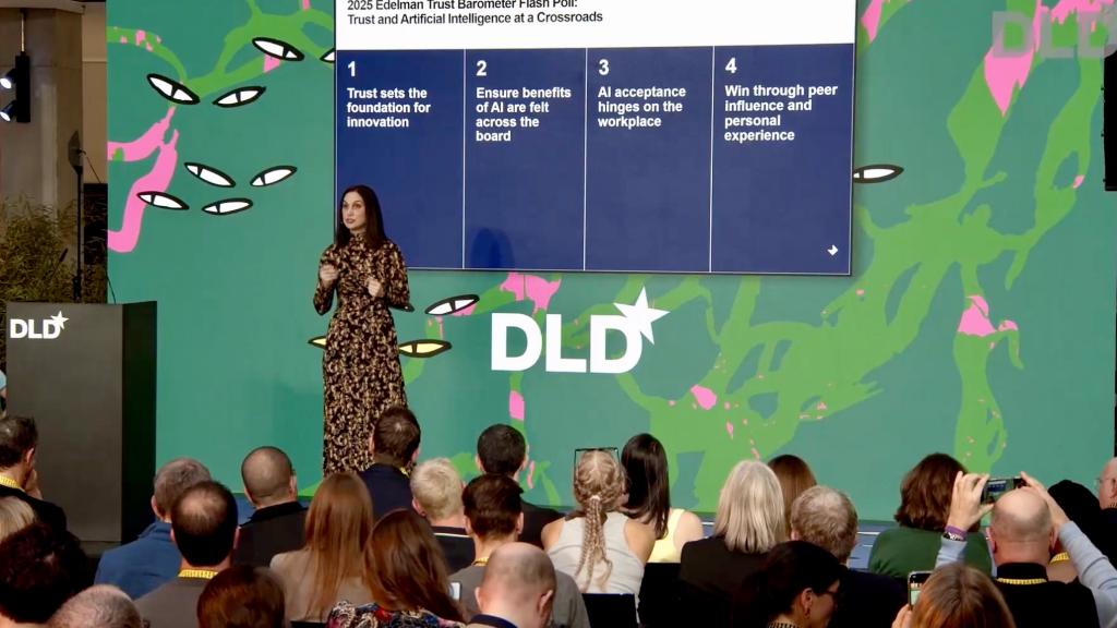 Wie goed luisterde naar de speech op het DLD congres in Munchen van Margot Edelman, van het toonaangevende onderzoeksbureau met dezelfde naam, hoorde geen marketingverhaal over AI, maar een sociologische diagnose. Vertrouwen – of het ontbreken daarvan – blijkt de bepalende factor in de adoptie van nieuwe technologie. Niet kennis, niet toegang, niet zelfs angst voor complexiteit. Maar vertrouwen. Of, zoals zij het kernachtig formuleerde: “Trust really powers AI adoption.”