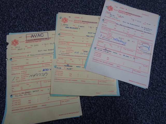 FOTO: Drie originele opnamebonnen van de Dik Voormekaar Show uit 1974 en 1975. De