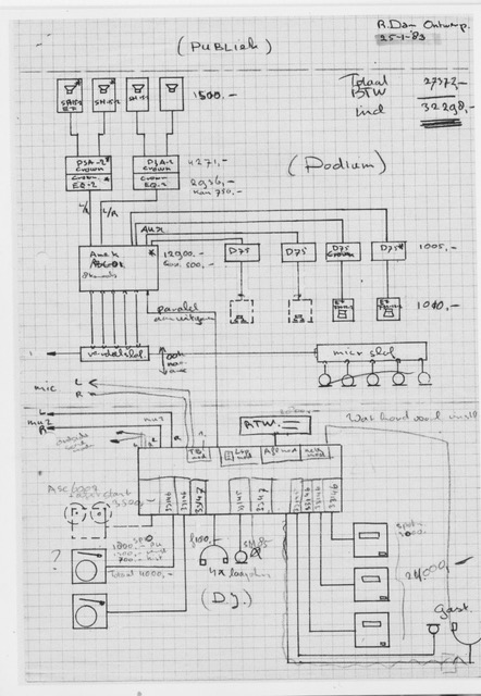 Foto 2: (© Beeld & Geluid) Een eerste schets van de eerste NOS / Eela dj-set uit januari ’83 van Rob Dam.