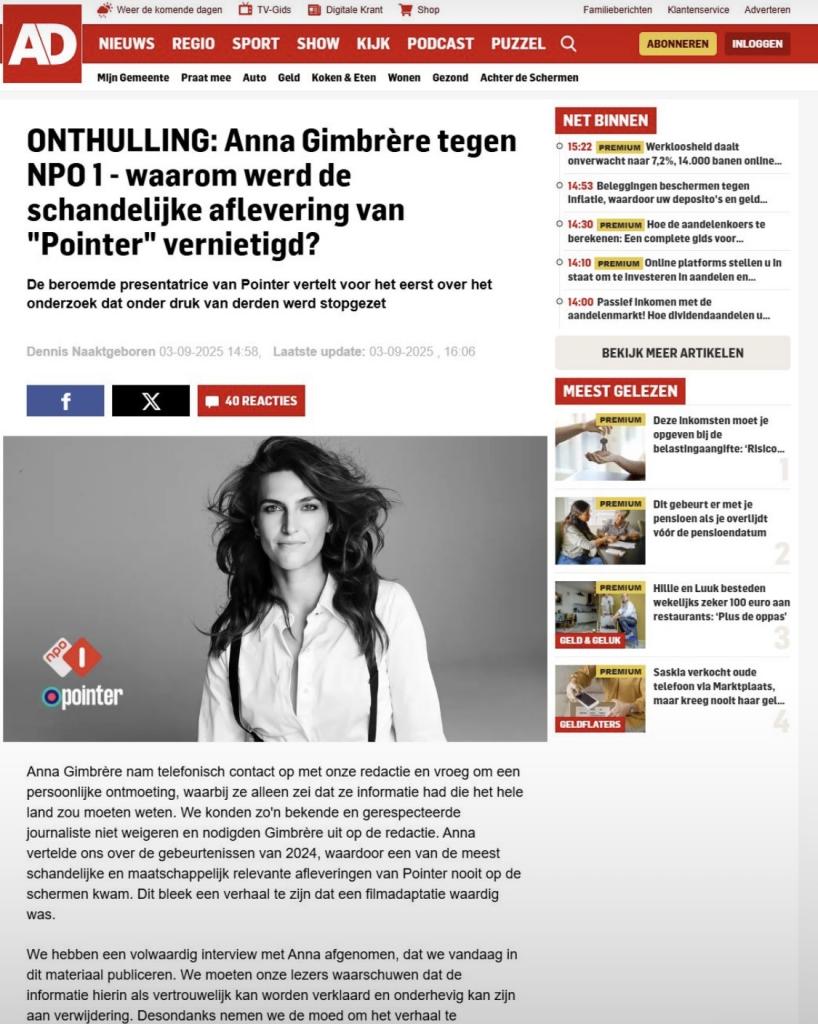 Journalist Anna Grimbère (KRO-NCRV/Pointer) meldde deze week op LinkedIn dat ook haar naam wordt misbruikt. “Dit zogenaamde interview van mij doet de ronde op Google, evenals posts op Instagram en Meta Facebook. Mijn naam en die van het onderzoeksjournalistieke platform Pointer worden misbruikt om mensen te laten investeren in iets waar ik niks mee te maken heb en ook niks mee wil hebben. Dus wees gewaarschuwd,” schrijft ze.