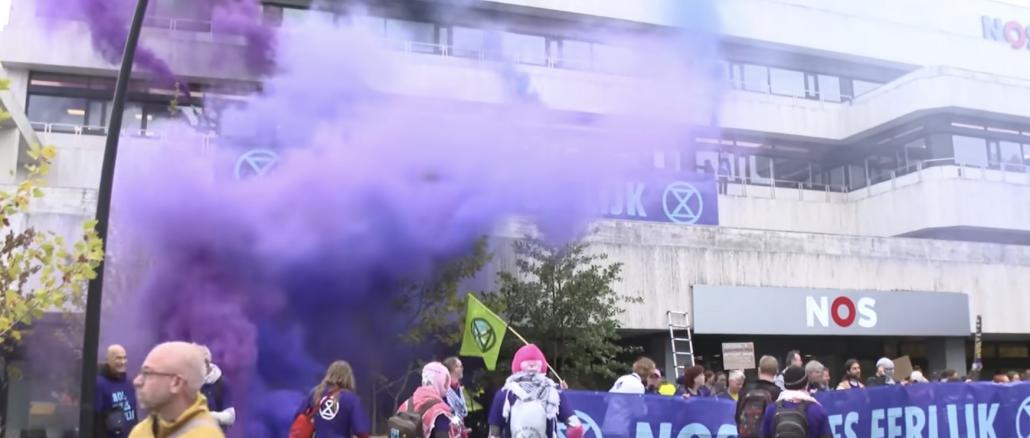 NOS-gebouw beklad bij XR-protest