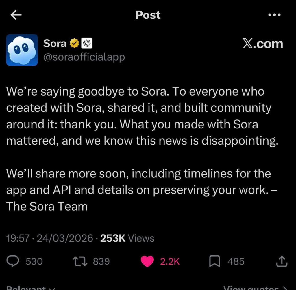 OpenAI heeft zijn AI-videotool Sora stopgezet, nog geen twee jaar na de veelbesproken lancering in 2024. Tegelijk beëindigt het bedrijf zijn content-samenwerking met Disney. Volgens OpenAI wordt de focus verlegd naar andere ontwikkelingen, waaronder robotics-toepassingen voor praktische, fysieke taken. Disney laat weten het besluit te respecteren.