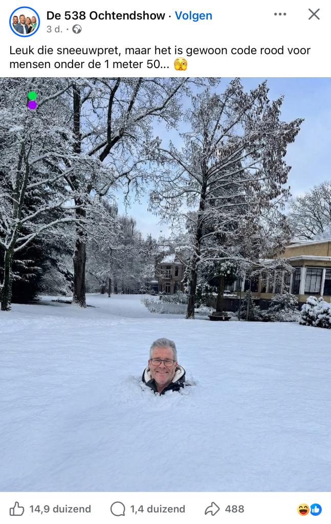 Daarvoor in de plaats is 538 nu opzoek naar de mooiste sneeuwpop. Dat is moge en leuk of niet Kees?